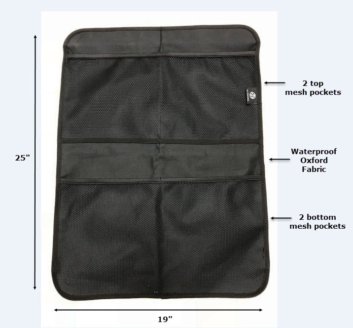 Whether you have a regular car, a truck, a minivan or an SUV, these car seat kick protectors will fit the seat backs perfectly! The strong straps with the secure buckles are very easy to install and the kick mat will stay in play, even if you load its roomy mesh pockets with as many items as they fit.